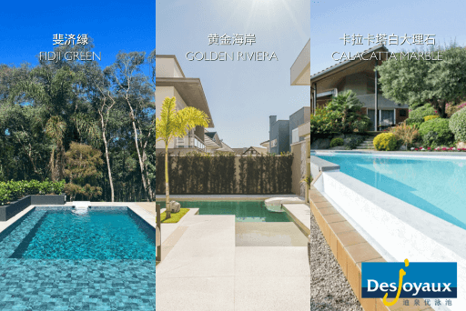 斐济绿、黄金海岸和卡拉卡塔白大理石等款式各具特色。斐济绿的灵感源自斐济岛火山岩,其独特的纹理和色彩打造出浓郁的热带雨林氛围,让人仿佛置身于神秘而迷人的热带雨林中,尽情享受大自然的魅力。黄金海岸则通过 3D 效果逼真地还原了细沙流动的质感,将南法海岸的浪漫风情带入别墅泳池,使泳池瞬间变成私藏海岸,为用户带来仿佛在海边度假般的享受。而卡拉卡塔白大理石以意大利大理石的质感为灵感,展现出优雅而纯净的风格,高级感十足,为泳池增添了一份奢华与高贵的气质。